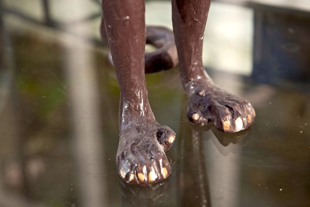 Pair of monkey - style Louis XV reproduction of candlesticks used in court of Louis XV. Brown monkeys with green and red coats. Gilt trim. Cast resin with paint. Made in the USA circa 1960. Condition: Excellent. 17”H x 12”D x 12”W. Height is to the top of the candleholder.