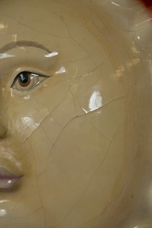 39" Diameter sun made out of paper mache with craquelure. The sun is painted. The artist is Mexican and exhibits in museums in the medium. Made in Mexico circa 1990. Condition: Excellent. 39" Dia