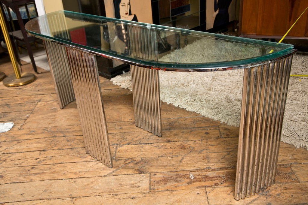 Art Deco Tubular Chrome Console Table Attributed to Vermillion of L.A.