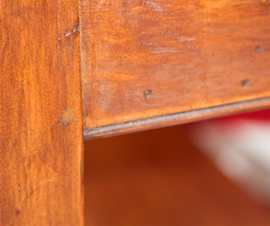 Large standing desk which is a reproduction of a 19th century piece. Made of knotty pine. The desk was produced for a TV series in the 1960's about New England ( USA ). It has two drawers. There is a very small metal knob on top which was probably used for a microphone connection. Condition: Very Good. 60”L x 28”D x 49”H
