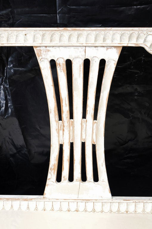 Antique settee. Birch wood with off-white milk paint, all hand carving. Gustavian Style. Recovered in white muslin. Made in Sweden circa 1920. Condition: Very Good - age appropriate. 38"H x 65"W x 25"D, S/H: 19"
