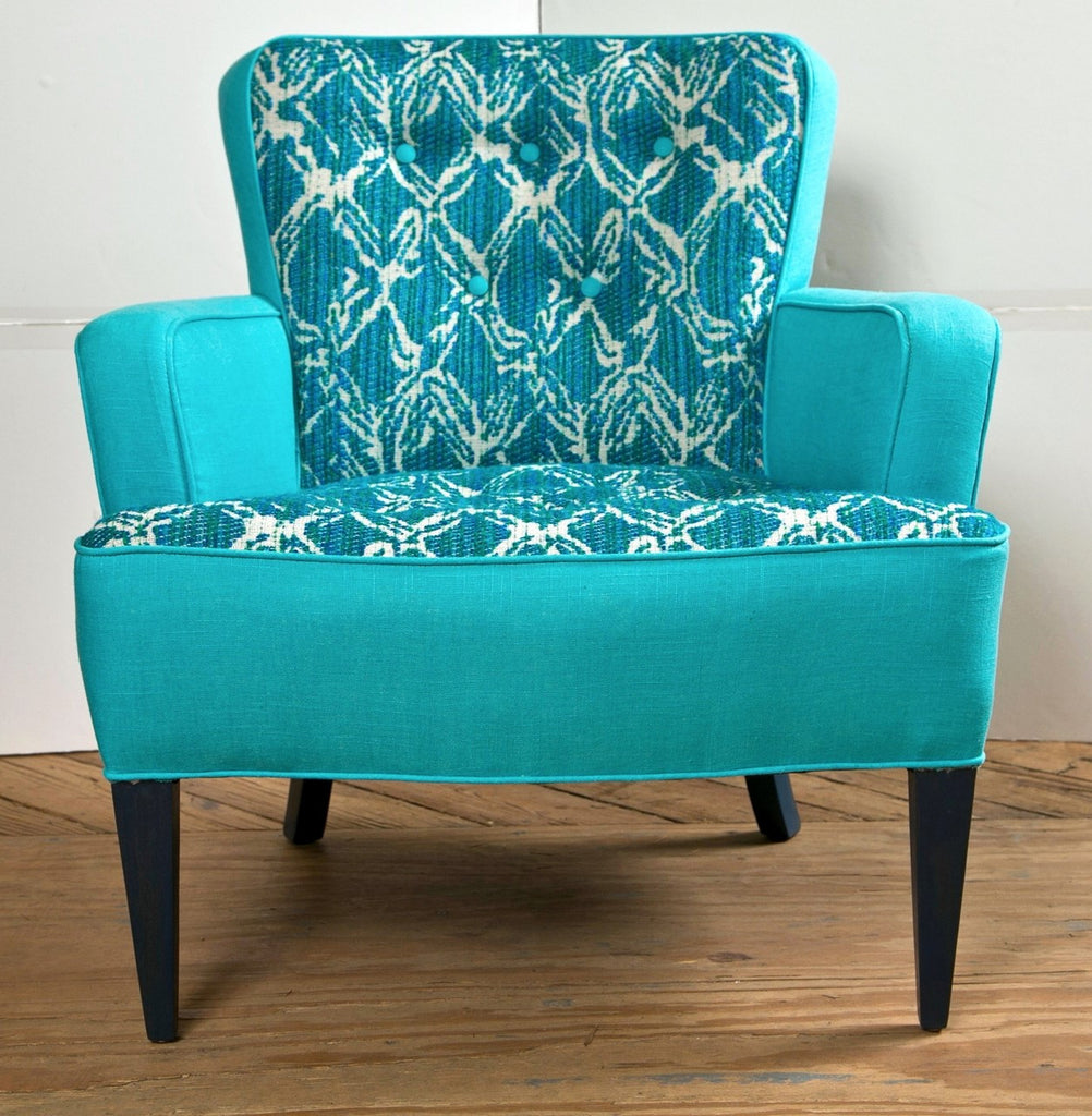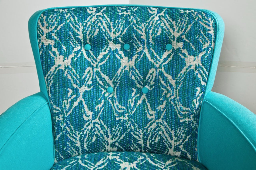 Mid Century Turquoise Club Chairs with Daniel Cooper Fabric